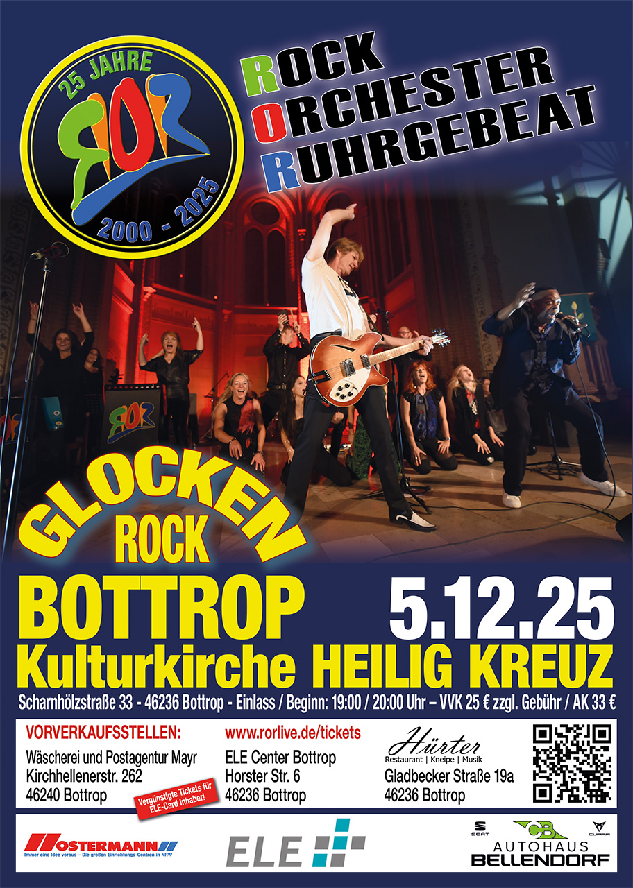 Mit einer kleineren Besetzung des Rock Orchesters Ruhrgebeat (ROR-Light) führt die Band ihre Serie von Kirchen-Konzerten im ganzen Ruhrgebiet – von Duisburg bis Dortmund – fort. Rock und Pop in den Kirchen der Region, dazu ein jubelndes, begeistertes Publikum – das gibt es nicht alle Tage zu sehen und zu hören. So wundert es nicht, dass sich das Rockorchester Ruhrgebeat seinen Status als eines der musikalischen Markenzeichen der Region erarbeitet hat.